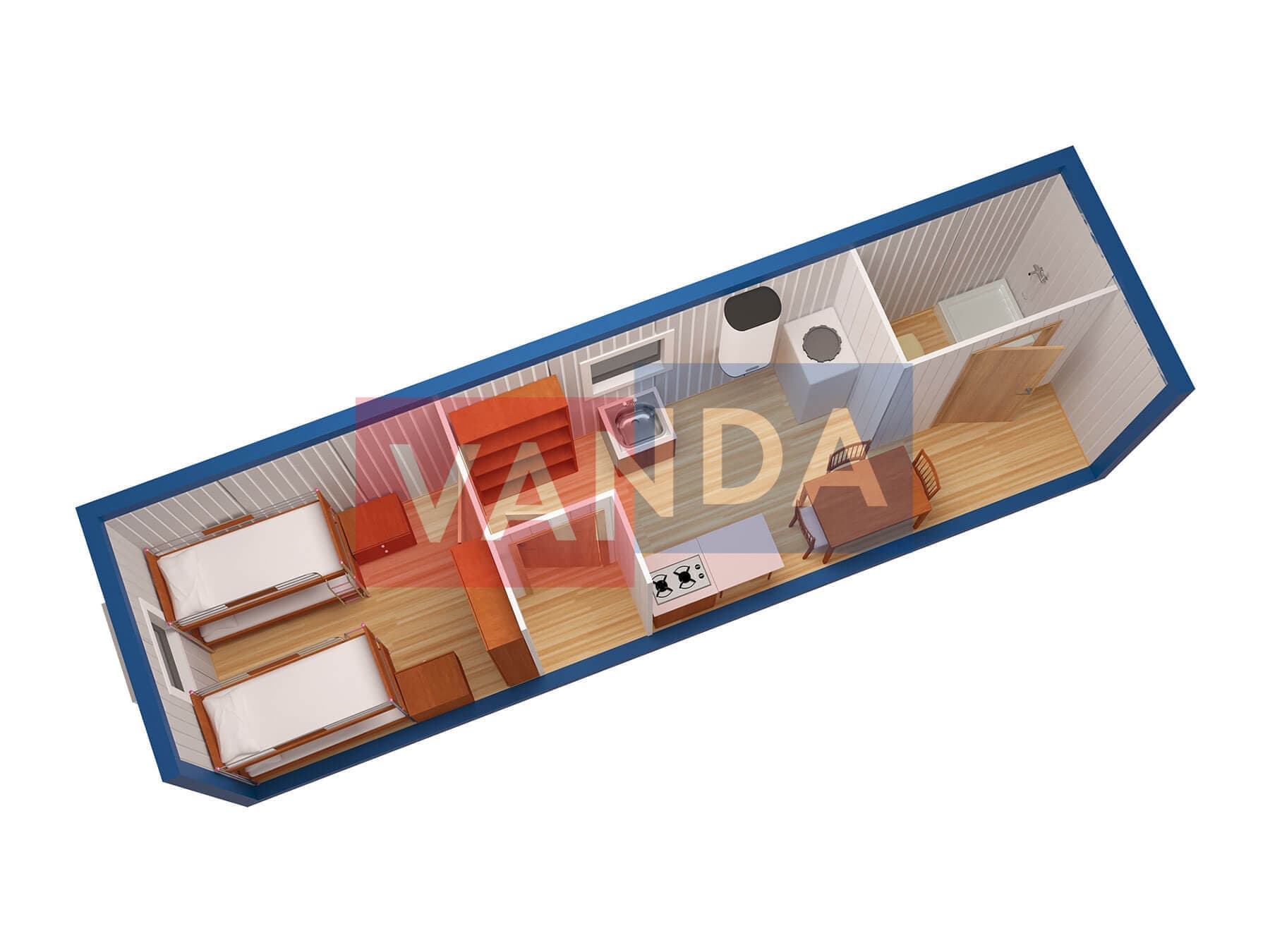 Металлическая бытовка без тамбура 5,85 x 2,4 - Вагонка деревянная