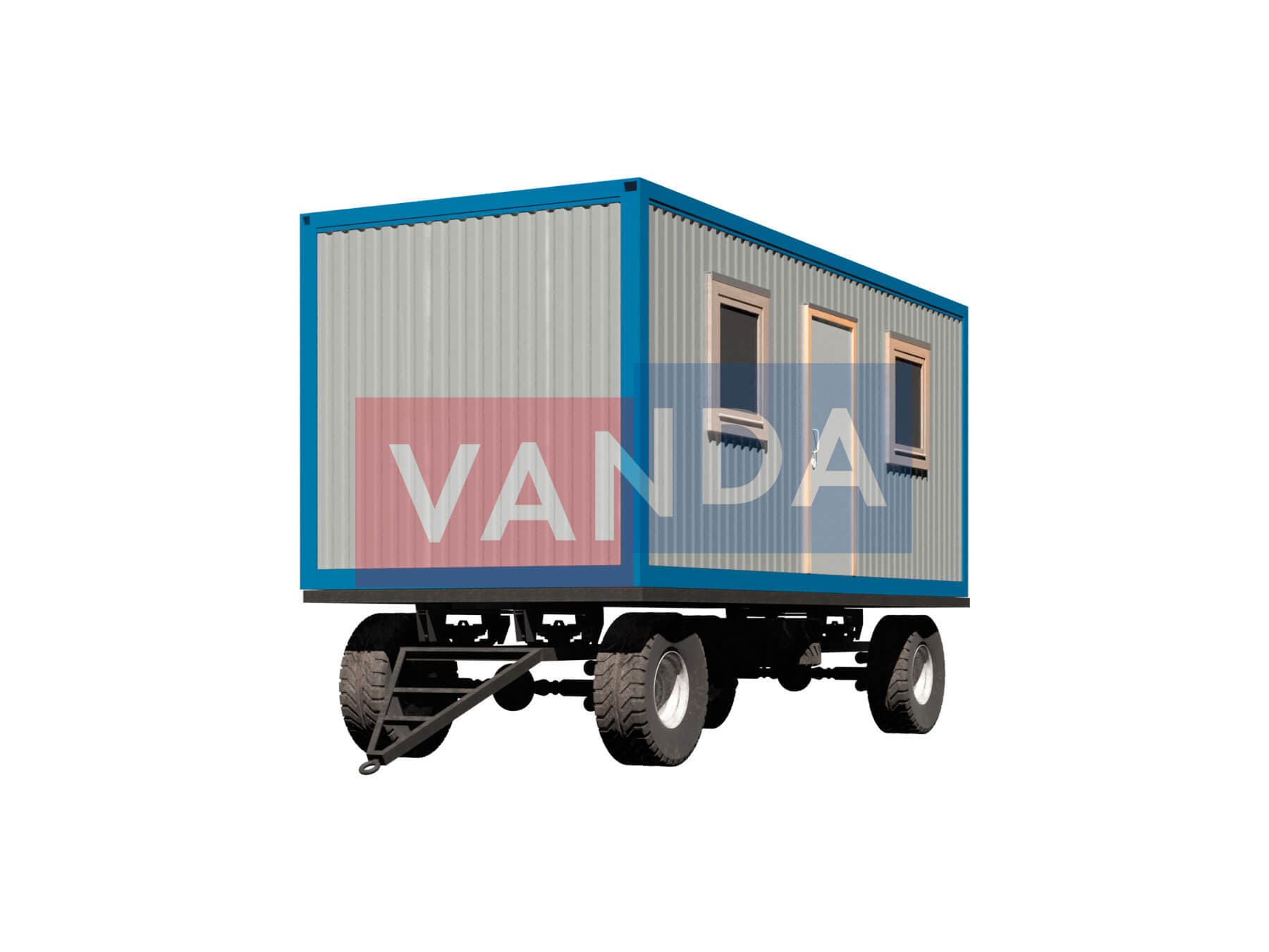 Прицеп бытовка на шасси 5,85х2,4 изготавливается из несущего каркаса (верхняя и нижняя обвязка): швеллер 100х50х3 мм., угловые стойки: сложно - гнутый угол 90х90х3 мм., крыша блок-контейнера: металл сварной 0,9-1 мм., качественная наружная отделка: оцинкованный профлист, внутренняя отделка стен: Вагонка деревянная, внутренняя отделка потолка: Вагонка деревянная, вспомогательный деревянный каркас (стены): брусок 40х75 мм., лаги пола: обрезная доска 40х100 мм., лаги потолка: обрезная доска 40х100 мм., выполнено утепление: Минеральная вата «ISOVER» – 50 мм. и пароизоляция: плёнка техническая, черновой пол состоит из: обрезная доска 20 мм. (2 сорт), чистовой пол покрыт: ДСП строительное 16 мм., отделка пола выполнена из качественных материалов. Контейнер комплектуется окнами: деревянное, двойное остекление 800х1000, входной дверью: ДГ 21-8 обшита снаружи оцинкованным листом, врезной замок и внутренними дверями: ДГ 21-8 (при наличии перегородки). Если в БК присутствуют перегородки, то для них используется: брусок 40х50 мм.
